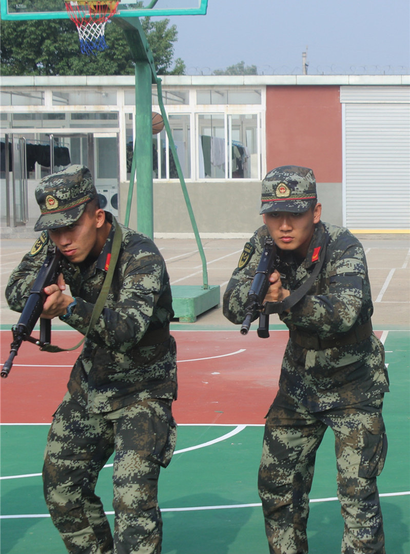 “小時(shí)候,我看過(guò)一部名為《烈火雄心》的電視劇,講的是消防員奮勇?lián)尵壬?,以濃煙考?yàn)斗志、以烈火洗煉人生的故事,那時(shí)我就對(duì)執(zhí)行任務(wù)類(lèi)型的職業(yè)非常向往。再加上男生打小對(duì)飛機(jī)、槍支武器都有一種特殊的感覺(jué),那時(shí)候就在想,有機(jī)會(huì)一定要去部隊(duì)歷練一番試試?!比尾敻嬖V記者,大二那年,他終于夢(mèng)圓軍營(yíng),服役于武警河南總隊(duì)某中隊(duì)?!?個(gè)月的新兵連非常充實(shí),隊(duì)列訓(xùn)練、拉練、長(zhǎng)途行軍......讓我印象深刻的是在行軍過(guò)程中,不管去到什么地方,只要一身軍裝在身,當(dāng)?shù)氐男∨笥讯紩?huì)朝我敬禮,老百姓也特別友善,讓我感到非常自豪,這種軍民魚(yú)水情讓我感覺(jué)非常好?!?/p> 服役期間,因表現(xiàn)突出,任伯聰被評(píng)為“優(yōu)秀義務(wù)兵”,于2019年退出現(xiàn)役。離開(kāi)部隊(duì)后,他重返大學(xué)校園完成學(xué)業(yè),并加入了學(xué)校的國(guó)防教育服務(wù)中心,為學(xué)校的征兵宣傳工作奔走發(fā)聲。在校期間,任伯聰從未忘記自己曾經(jīng)是一名軍人?!拔覉?jiān)持每天長(zhǎng)跑10公里,練習(xí)單杠,也一直有按照之前部隊(duì)的訓(xùn)練標(biāo)準(zhǔn)來(lái)保持鍛煉?!?/p>  左一為任伯聰。