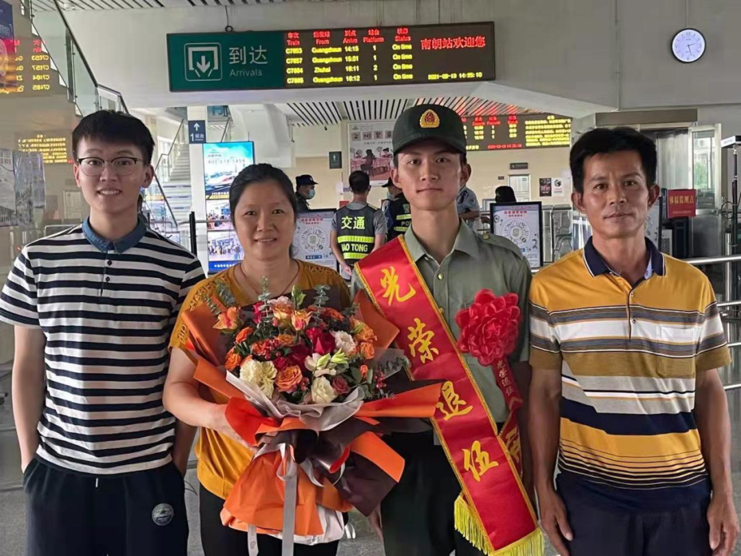 “去時鑼鼓喧天,歸來夾道歡迎。” 九月,正是退役軍人 從祖國各座軍營 返回家鄉(xiāng)的退役季 為營造“一次參軍、一生光榮”的濃厚氛圍 讓退役軍人感受到家鄉(xiāng)人民的熱情和關懷 激發(fā)老兵退伍不褪色 返鄉(xiāng)建新功的壯志熱情 9月13日下午,五桂山街道2021年首位退役軍人曾世紀光榮退役返鄉(xiāng)。街道退役軍人服務中心負責人、社區(qū)“兩委”干部、工作人員以及曾世紀的父母早早手持鮮花,在城軌南朗站等候迎接世紀回家。 回想2019入伍歡送大會時曾世紀代表五桂山即將入伍的新兵作表態(tài)發(fā)言,那年,他主動請纓,到艱苦邊遠地區(qū)服役?!皡④姴粌H是個人的榮耀,也是家人的榮耀,更是鄉(xiāng)親們的榮耀。到了部隊后我會堅決服從命令,聽從指揮,刻苦訓練,勤學本領,絕不辜負家鄉(xiāng)人民的期望!”