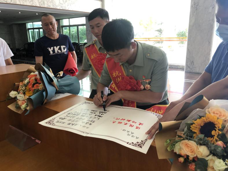 候選人副鎮(zhèn)長余添宏與劉德偉、劉品添兄弟倆親切握手并合影,歡迎他們回到家鄉(xiāng),贊揚劉德偉、劉品添父母為國家培養(yǎng)出優(yōu)秀人才。希望兩兄弟能夠繼續(xù)保持軍人本色,以積極的態(tài)度迎接新挑戰(zhàn),以后在各自的崗位上建功立業(yè)。