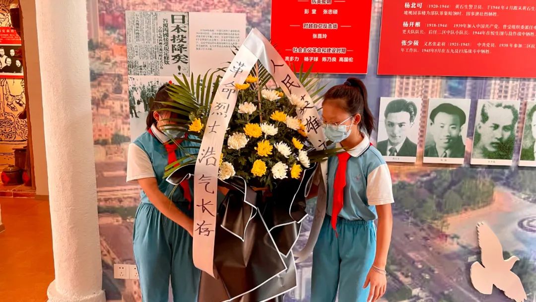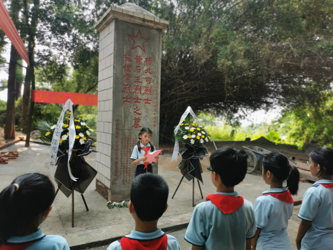 少先隊(duì)員代表、中心小學(xué)學(xué)生黃可馨為烈士們獻(xiàn)詞:作為未來祖國接班人,身上流淌著的是先輩們的紅色基因,傳承的是紅色的革命的理想,應(yīng)該養(yǎng)成文明進(jìn)取的習(xí)慣,學(xué)習(xí)好各門文化知識(shí),掌握好各種科學(xué)技術(shù),完善自己的思想,凈化自己的心靈。維護(hù)民族尊嚴(yán)和國家榮譽(yù),將國家的明天建設(shè)得更加美好!