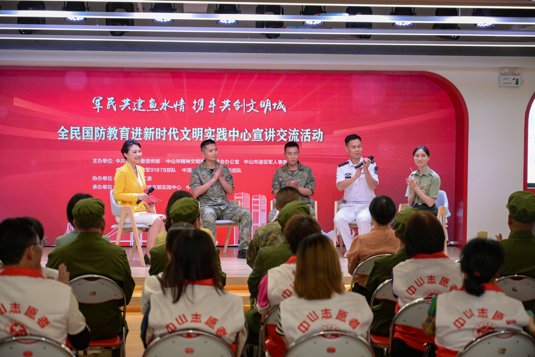 5月18日下午,全民國(guó)防教育進(jìn)新時(shí)代文明實(shí)踐中心宣講交流活動(dòng)在中山市民眾街道新時(shí)代文明實(shí)踐中心舉行,退役軍人代表、基層群眾、村干部以及受邀出席的中國(guó)人民解放軍91878部隊(duì)、69316部隊(duì)官兵代表等200余人參加活動(dòng)。  活動(dòng)現(xiàn)場(chǎng)。記者 易承樂(lè) 攝