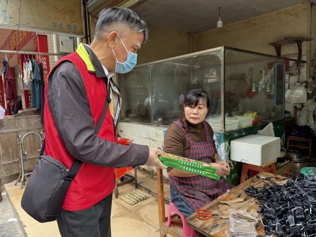 除了走進村(居)民家中普及防蚊知識,各村(社區(qū))“兩熱”防控行動組還將宣傳觸角延伸至轄區(qū)商鋪。行動人員手把手幫商戶檢查花瓶積水、廢舊水桶等蚊蟲孳生隱患點,反復(fù)提醒商戶做好“翻盆倒罐”,嚴格落實“門前三包”?!盎卓涎艧?、登革熱可不是普通發(fā)燒,關(guān)節(jié)疼起來特別難受,傳播源就是伊蚊,咱們把衛(wèi)生搞好了,蚊蟲少了,‘兩熱’自然就不來了。”一句句通俗易懂的講解,讓防控知識真正走進商戶、融入居民生活,實現(xiàn)入腦入心。
