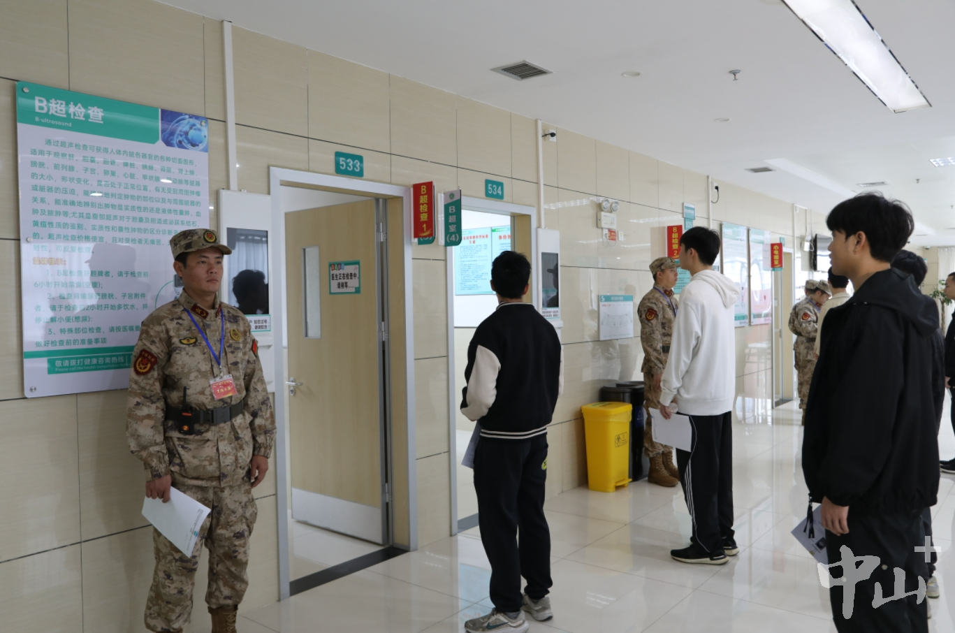 1月20日,中山市2024年上半年征兵體檢在火炬開發(fā)區(qū)人民醫(yī)院開啟,預(yù)計體檢時間將持續(xù)2周以上。 早上7時許,在火炬開發(fā)區(qū)人民醫(yī)院門診五樓,中山市征兵辦工作人員對照名冊開始人員清點。中山市征兵體檢隊總檢醫(yī)生李燦永介紹,此次征兵體檢面向全市所有鎮(zhèn)街,上站青年預(yù)計有1500人左右,其中大學(xué)畢業(yè)生有800人左右。當(dāng)天有100多名大學(xué)畢業(yè)生參加上站體檢,體檢項目有外科、內(nèi)科、心電圖等多個項目。 應(yīng)征青年排隊體檢。記者 王云 攝