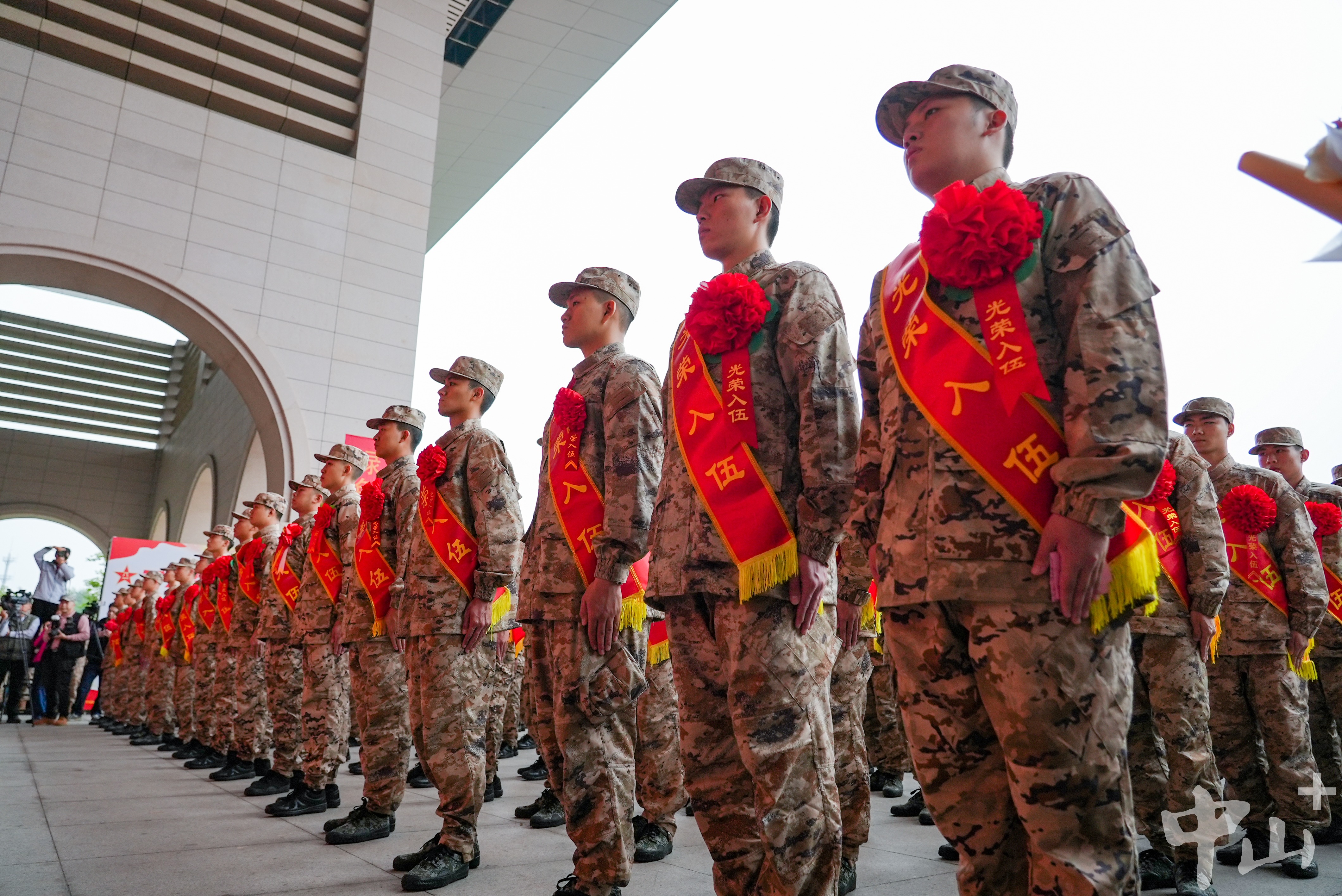 青春獻給國防,熱血報效祖國。 3月16日早上,中山市2024年上半年入伍新兵歡送大會在城軌中山站的進站廣場舉行。300多名適齡青年經過嚴格的體檢和政考,即將邁入軍營。 3月16日早上,中山市2024年上半年入伍新兵歡送大會在城軌中山站的進站廣場舉行。記者 易承樂 攝