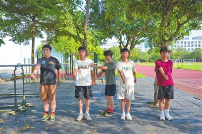 鐘鑫引導同期參軍的另外4名大學畢業(yè)生進行體能訓練。記者 易承樂 攝