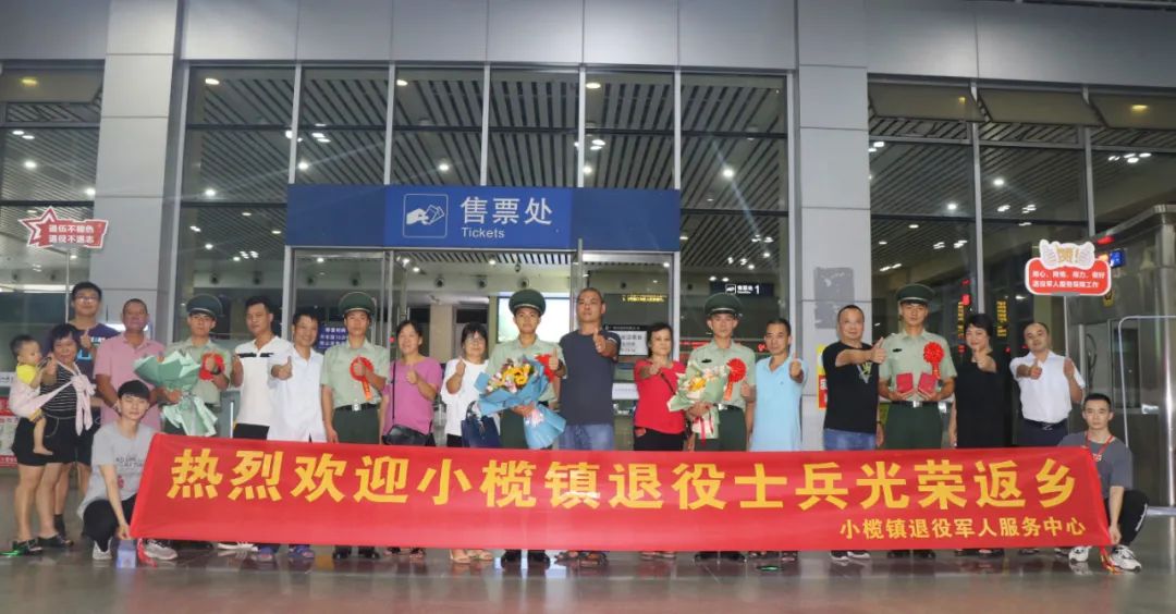 小欖鎮(zhèn)在小欖城軌站出口處設(shè)置迎接點(diǎn)歡迎退役軍人光榮返鄉(xiāng)