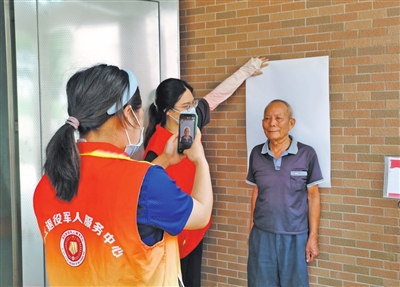 ▲西區(qū)街道退役軍人服務(wù)中心工作人員上門為老兵辦理優(yōu)待證。