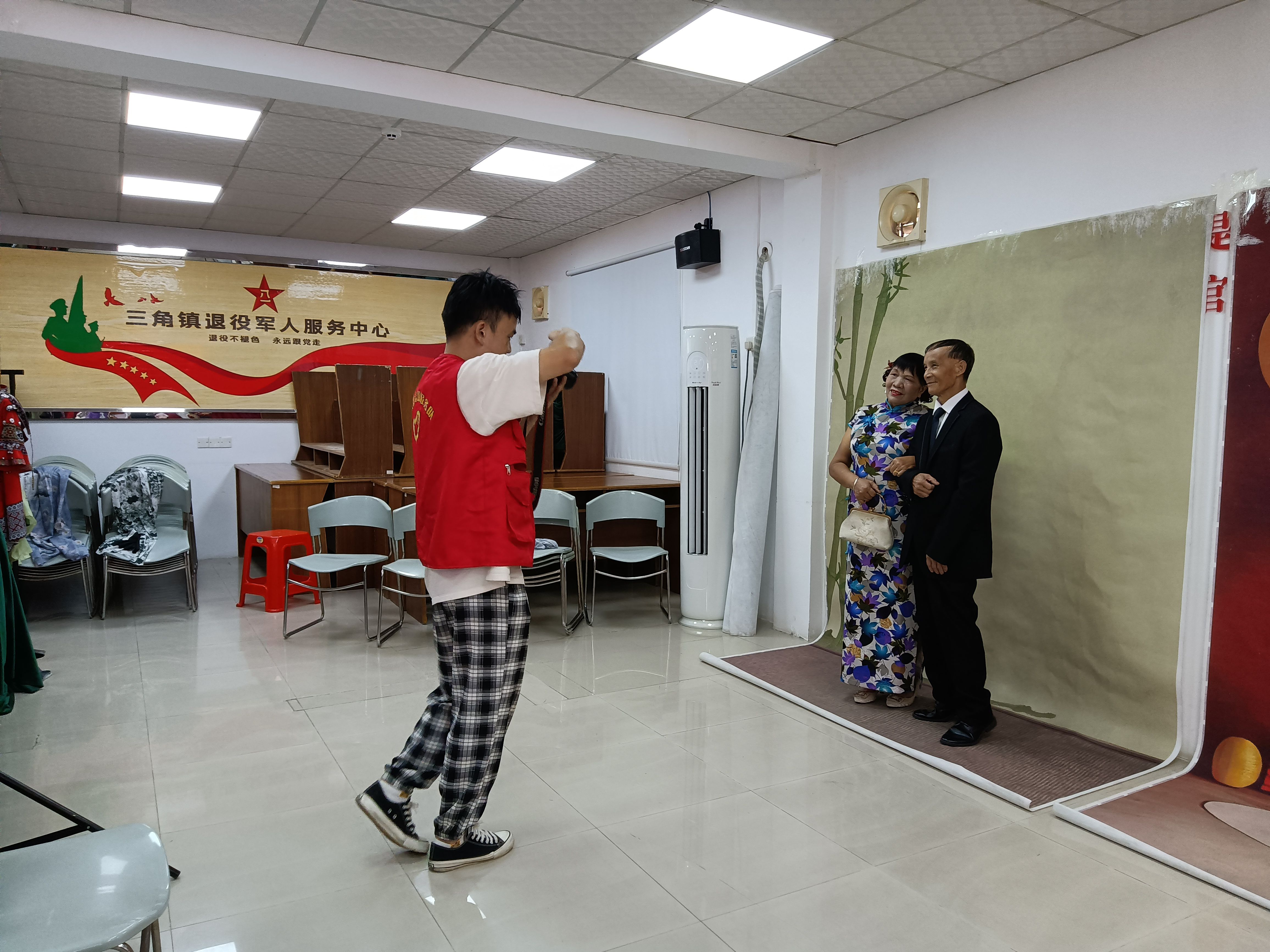 活動現(xiàn)場,三角鎮(zhèn)退役軍人服務中心的會議室被精心布置成臨時攝影棚,分為攝影區(qū)、化妝區(qū)、服裝區(qū)、選片區(qū)和等候區(qū)等多個功能區(qū)域,流程清晰、服務周到。工作人員耐心為退役軍人及家屬化妝、整理服裝、調整發(fā)型,細致指導拍攝姿勢與表情。攝影師一邊捕捉動人畫面,一邊認真傾聽老兵們講述崢嶸歲月。在輕松愉快的氛圍中,一個個拍攝任務順利完成,活動現(xiàn)場歡聲不斷、暖意融融。