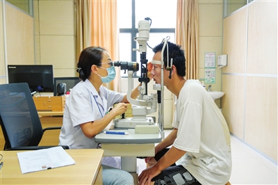 醫(yī)生對(duì)應(yīng)征青年進(jìn)行視力檢查。記者 易承樂 攝