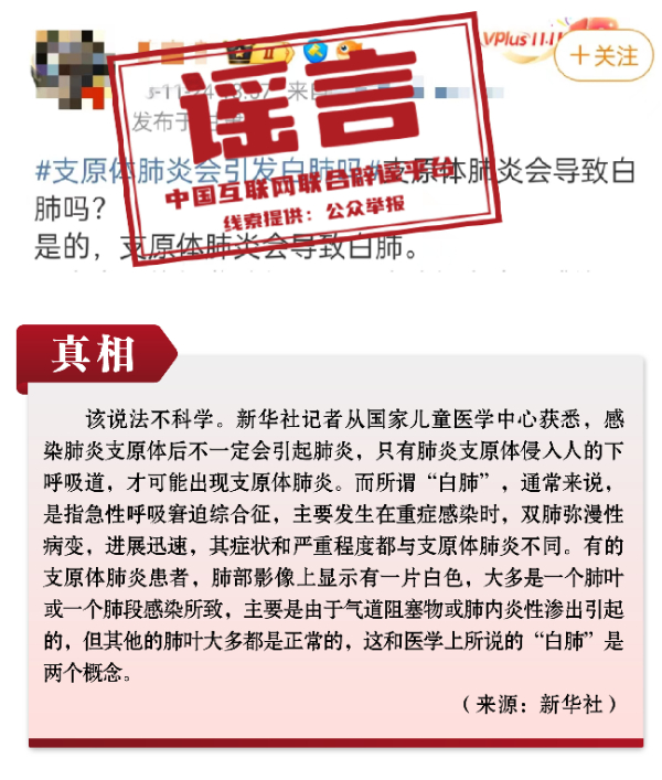 感染肺炎支原體會出現(xiàn)“白肺”?互聯(lián)網(wǎng)11月辟謠榜來了