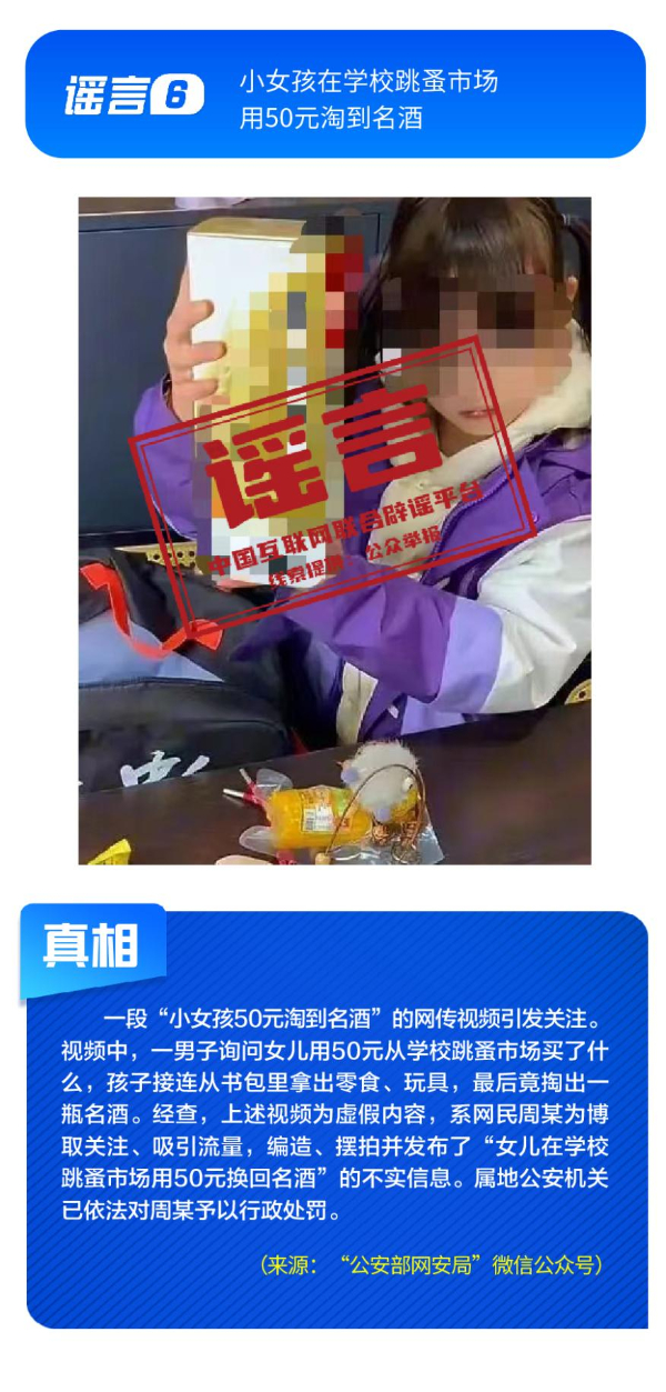 社會(huì)民生領(lǐng)域謠言引發(fā)不當(dāng)炒作。“小女孩在學(xué)校跳蚤市場用50元淘到名酒”的視頻,實(shí)為擺拍炒作,虛構(gòu)“撿漏”情節(jié)博取流量;“某奶茶品牌疑似擦邊毒品”蹭炒網(wǎng)上熱點(diǎn),似是而非、夸大其辭的說法對(duì)企業(yè)合法經(jīng)營造成困擾,也引發(fā)公眾不必要的焦慮;“微信好友數(shù)量過多會(huì)被封號(hào)”系對(duì)平臺(tái)運(yùn)營機(jī)制的無端猜測,利用網(wǎng)民對(duì)平臺(tái)規(guī)則的陌生進(jìn)行炒作,還可能給黑灰產(chǎn)帶來可乘之機(jī)。