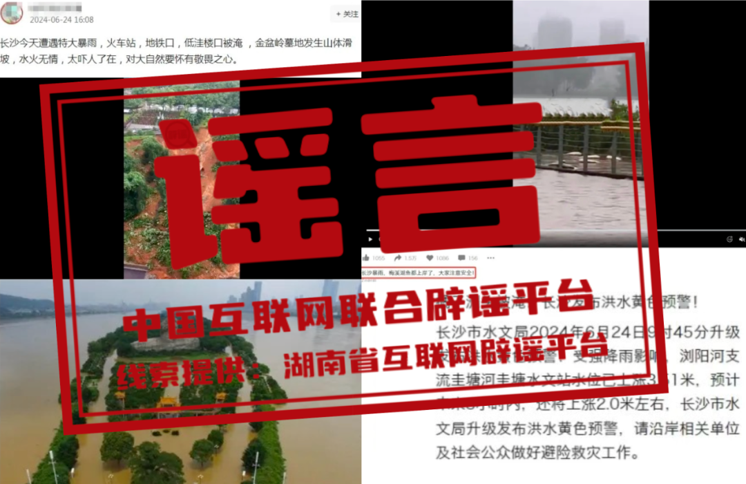 謠 言 長(zhǎng)沙暴雨致橘子洲頭被淹?金盆嶺烈士陵園坍塌?梅溪湖的魚(yú)都上岸了?