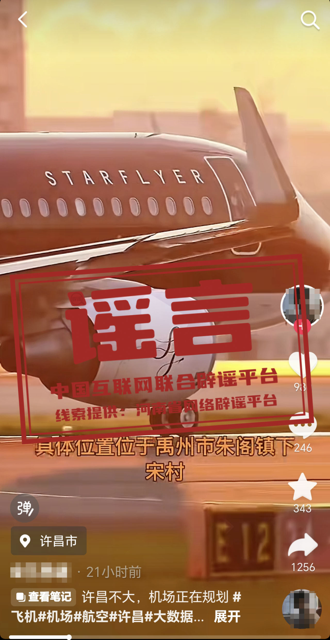 謠 言 河南許昌已明確通用機(jī)場的選址和投資金額?