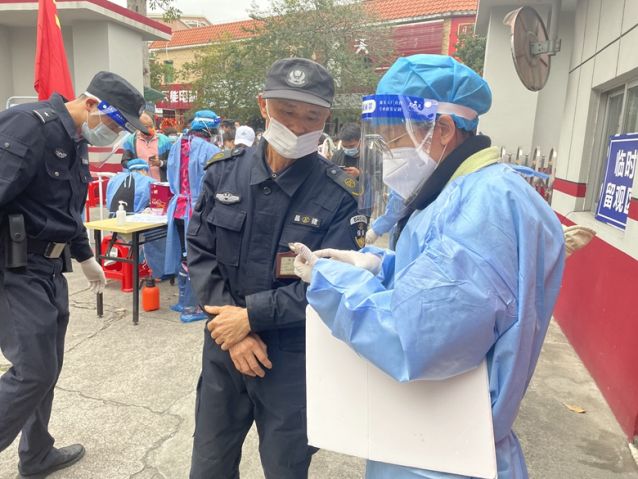 “疫情就是命令、防控就是責(zé)任”。三鄉(xiāng)鎮(zhèn)禁毒社工穿上隔離防護衣在核酸檢測采樣點指引居民有序排隊,耐心講解核酸檢測流程,協(xié)助居民完成粵核酸個人資料填寫。同時,安撫群眾因排隊時間長而產(chǎn)生的不良情緒,爭取群眾對疫情防控核酸檢測工作的支持和理解,也利用此時間間隙向前來做核酸檢測的群眾傳達(dá)如何預(yù)防和杜絕毒品,有力提高了居民的禁毒意識和防疫情能力。